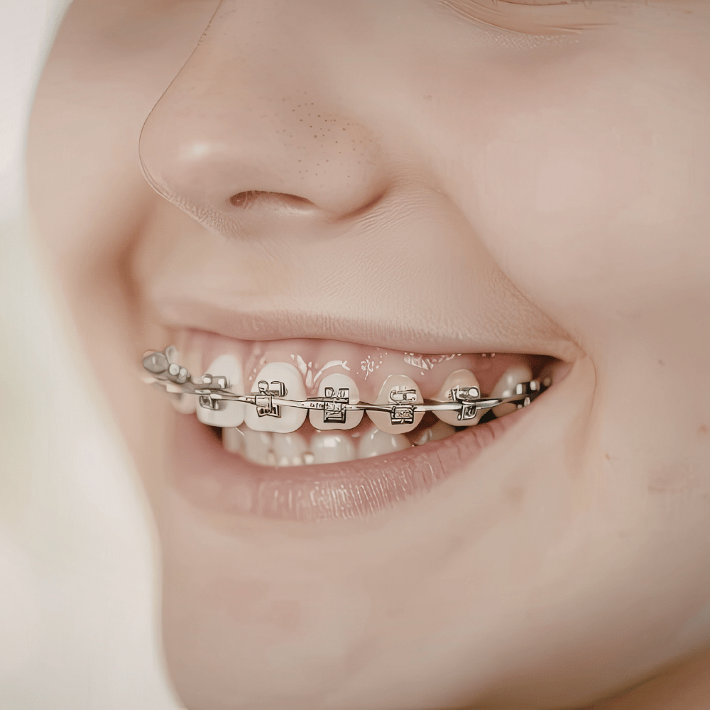 - Traditional braces: Metal brackets and wires to align teeth over time.